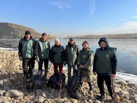 В ходе акции участники собрали бытовые отходы, мусор на слиянии Малого и Большого Енисея, где установлена самая большая в России статуя Будды